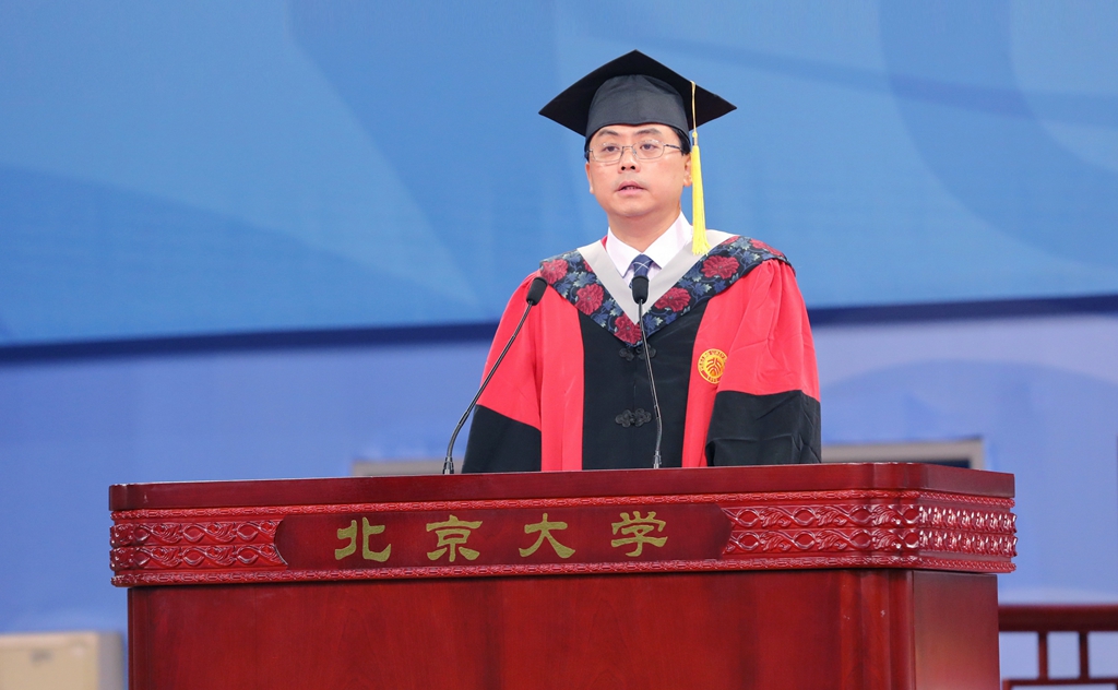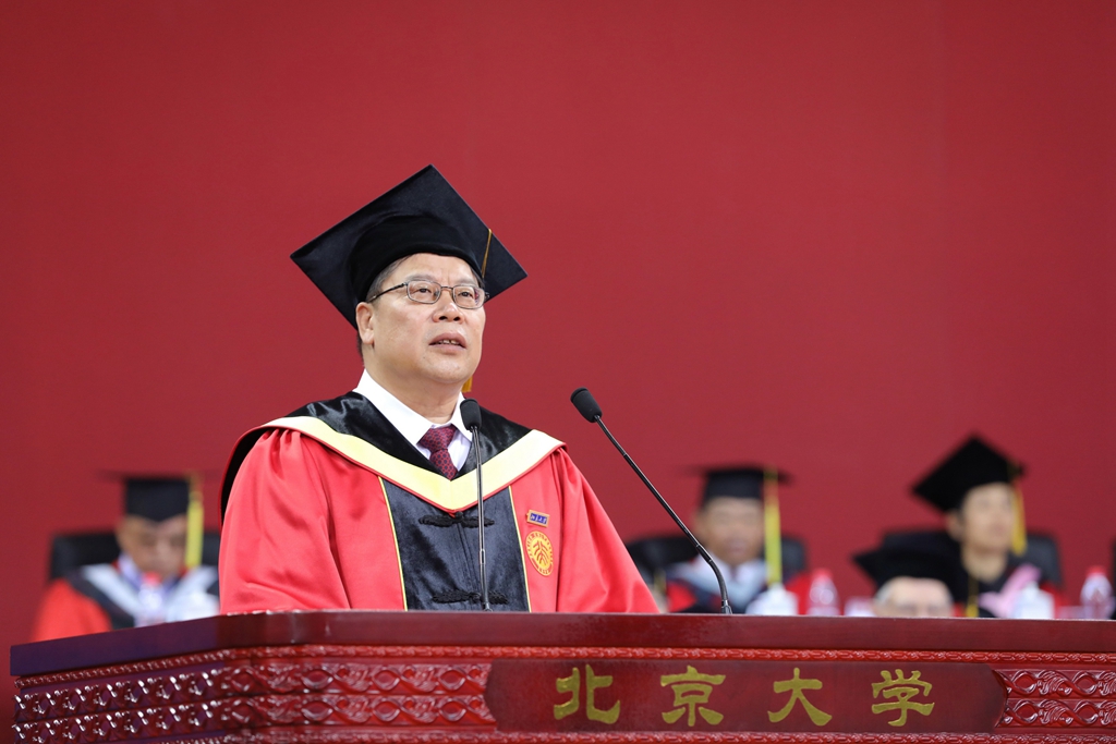 邱水平向同学们顺利完成学业表示热烈祝贺,向各位老师、家人和关心爱护北大学生的各界人士表示衷心感谢。所有的毕业生都是可爱、可信、可贵、可为的。离别之际,邱水平送给同学们三句话:“有所信”——100多年来,“爱国、进步、民主、科学”始终是北大人的信仰,他希望大家继续喊响“团结起来、振兴中华”的时代最强音,把人生理想融入时代发展主流之中,把个人的“小我”融入祖国和人民的“大我”之中;“有所为”——新时代是属于奋斗者的时代,而奋斗的道路不会一帆风顺,他希望大家始终保持积极向上的阳光心态,抱定宗旨、咬紧目标,永不气馁、永不迷失;“有所守”——不管未来有多少诱惑或是艰难险阻,他希望大家保持定力,守住作为“北大人”的底线,始终光明磊落、谦虚谨慎、诚朴厚道、脚踏实地。“不管你们走多远,母校都是你们最坚强的后盾、最温暖的港湾和永远的精神家园。”