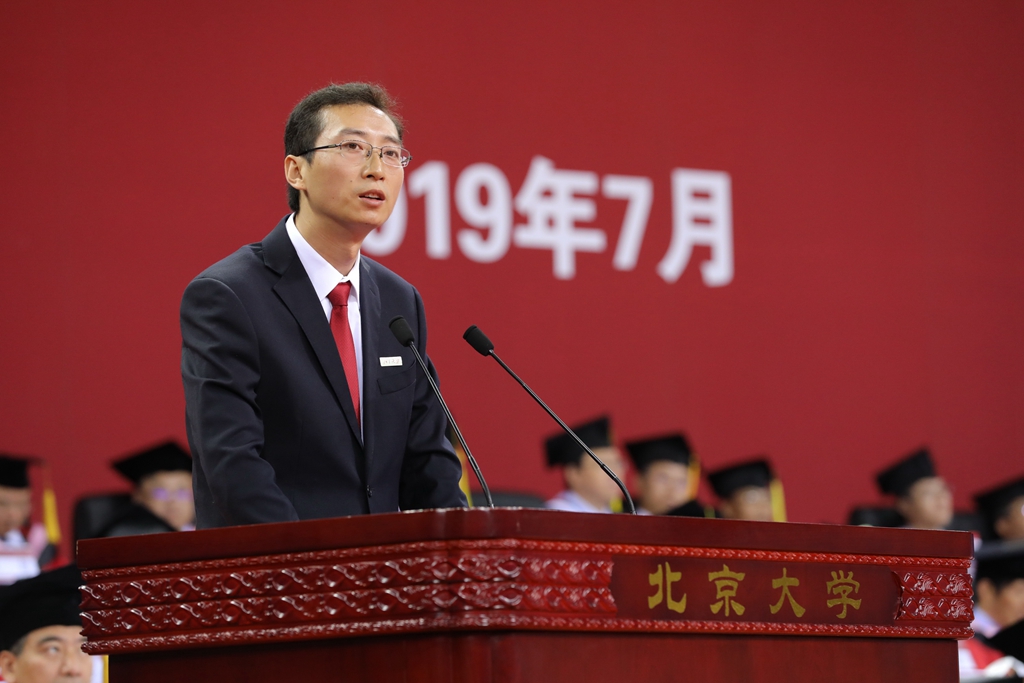 奏唱国歌后,邱水平致辞并宣读了优秀毕业生表彰决定,授予523名本科生2019年“北京大学优秀毕业生”荣誉称号,推荐178名本科生为2019年“北京市普通高等学校优秀毕业生”。