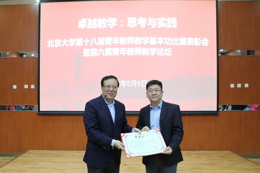 5月9日下午,北京大学第18届青年教师教学基本功比赛表彰会暨第六届青年教师教学论坛在邱德拔体育馆多功能厅举行。校长郝平出席并为获奖青年教师逐一颁奖,校党委副书记、工会主席安钰峰宣读表彰决定,副校长、教代会执委会主任王仰麟,校工会常务副主席、教代会执委会副主任张宝岭等参与论坛交流。获奖教师和基层工会代表共80余人参加。表彰会由校工会副主席刘杉杉主持。
