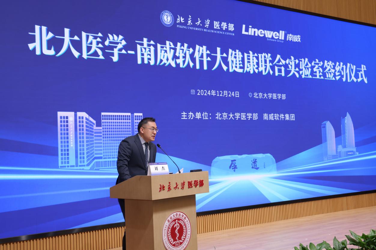 2024年12月24日,“北大医学-南威软件大健康联合实验室”签约仪式在北京大学医学部科技楼举行。北京大学医学部副主任肖渊,中国软件行业协会副理事长、南威软件股份有限公司董事长吴志雄,北京大学公共卫生学院院长詹思延,南威软件股份有限公司党委书记李健,北京大学医学部产业管理办公室副主任/技术转移办公室主任沈娟,南威软件股份有限公司人才经营中心总裁李靖,南威软件股份有限公司城市治理业务群总裁游建友,南威股份有限公司大健康事业部运营总监白鸽女士,北京大学公共卫生学院黄涛教授以及多位南威软件和人工智能大健康领域知名专家共同出席。